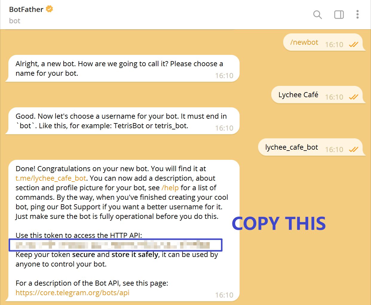 BotFather에 환영 메시지와 사용 지침을 입력하면 완료입니다!