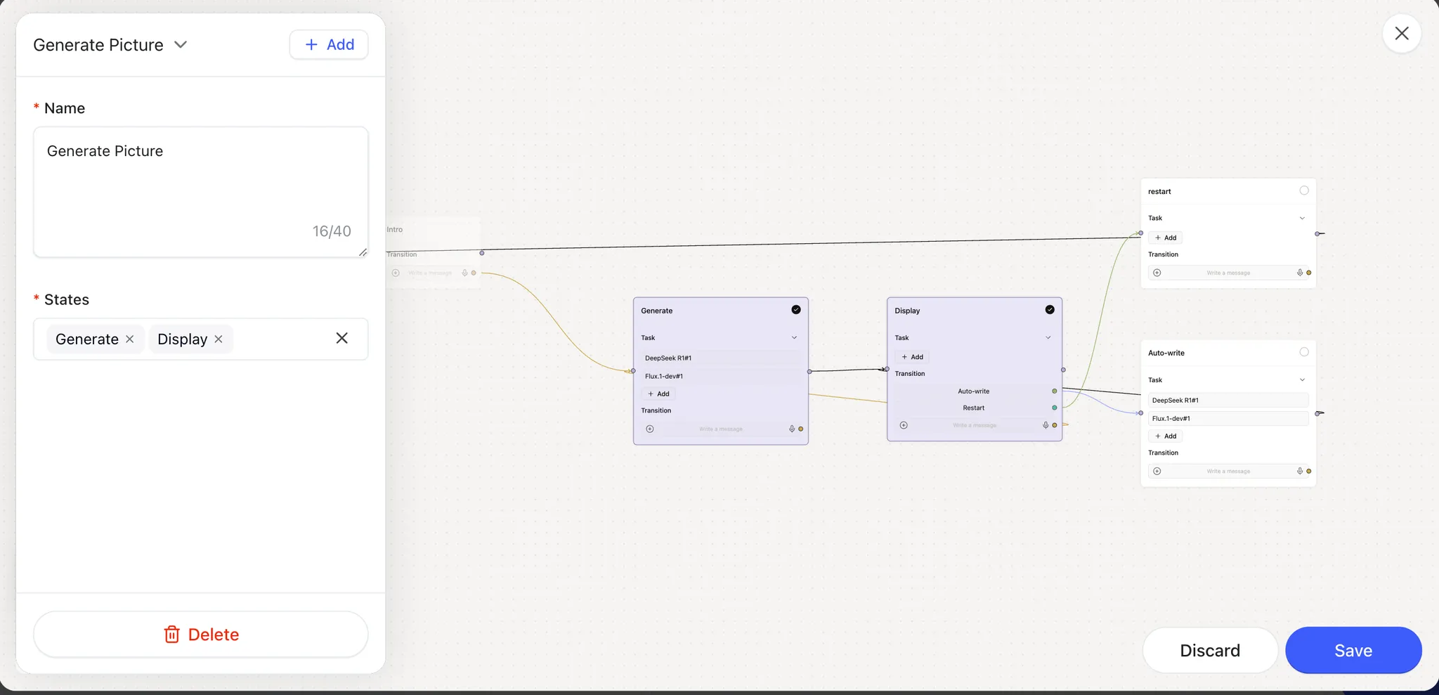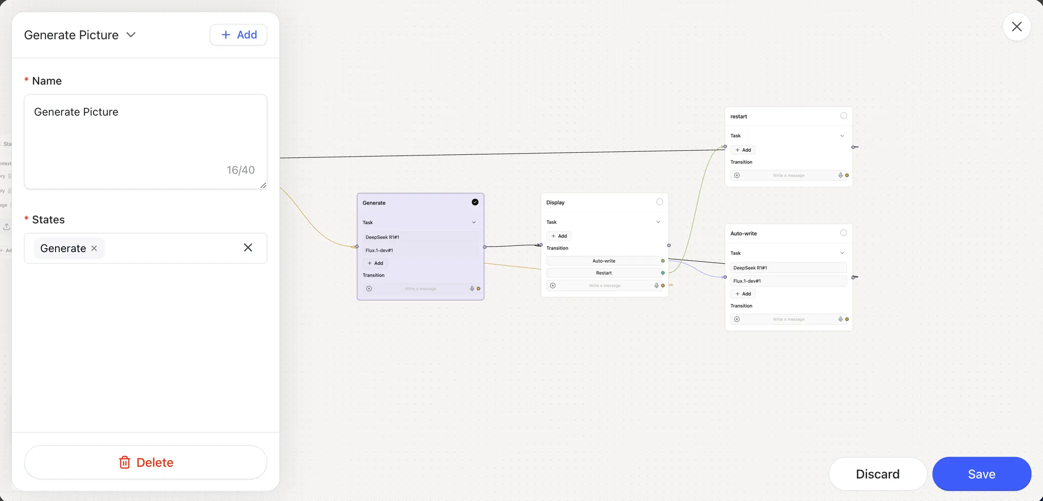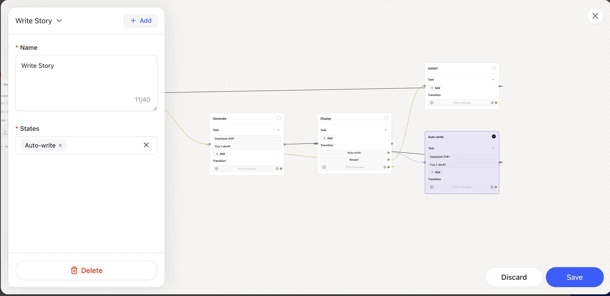 On the app canvas, select the States (ShellAgent nodes) that make up this feature by checking the corresponding boxes.