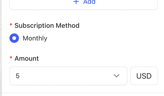 Choose a payment method. Currently, only monthly subscriptions are supported, and due to App Store restrictions, you can only pick from a few fixed price tiers.
