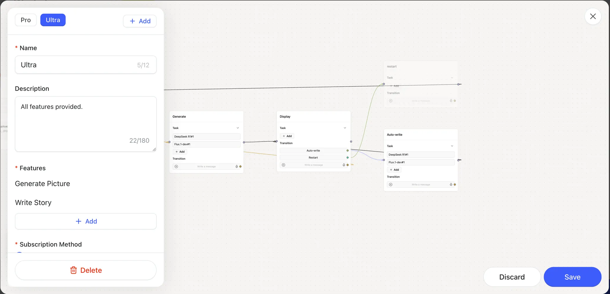 In your agent’s dashboard, click Edit Features to start defining what users will pay for.
