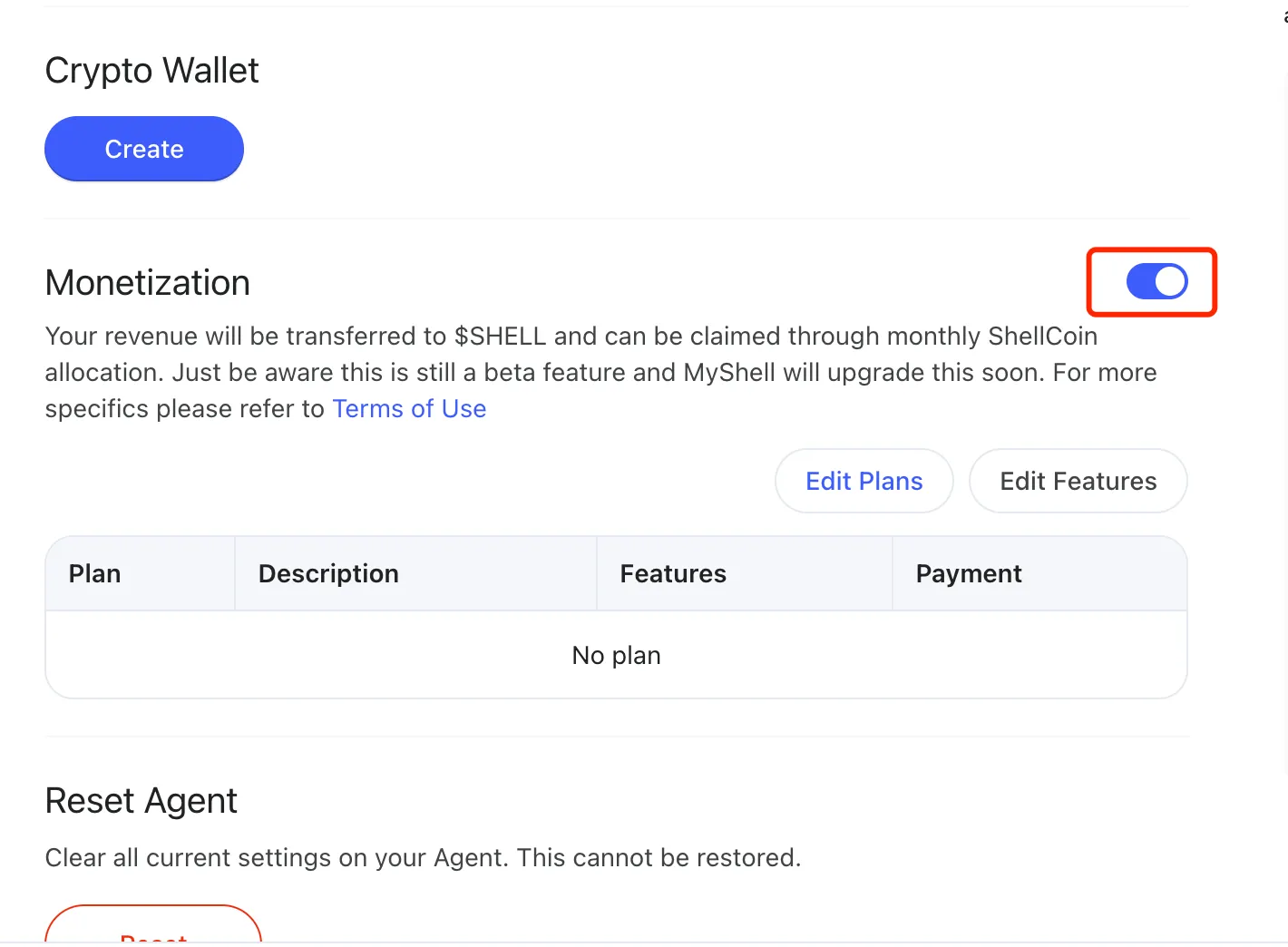 Go to your agent’s settings and toggle the Monetization switch to ON. This activates the ability to set up paid features.